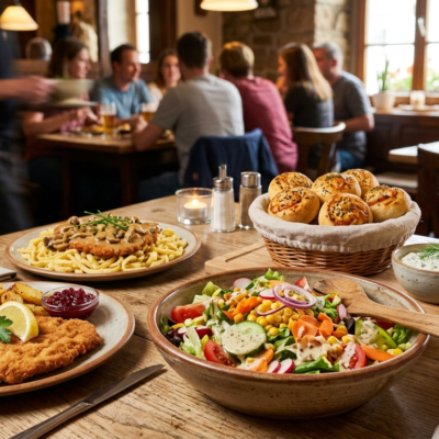 Alle Gerichte werden mit einem Beilagen Salat serviert